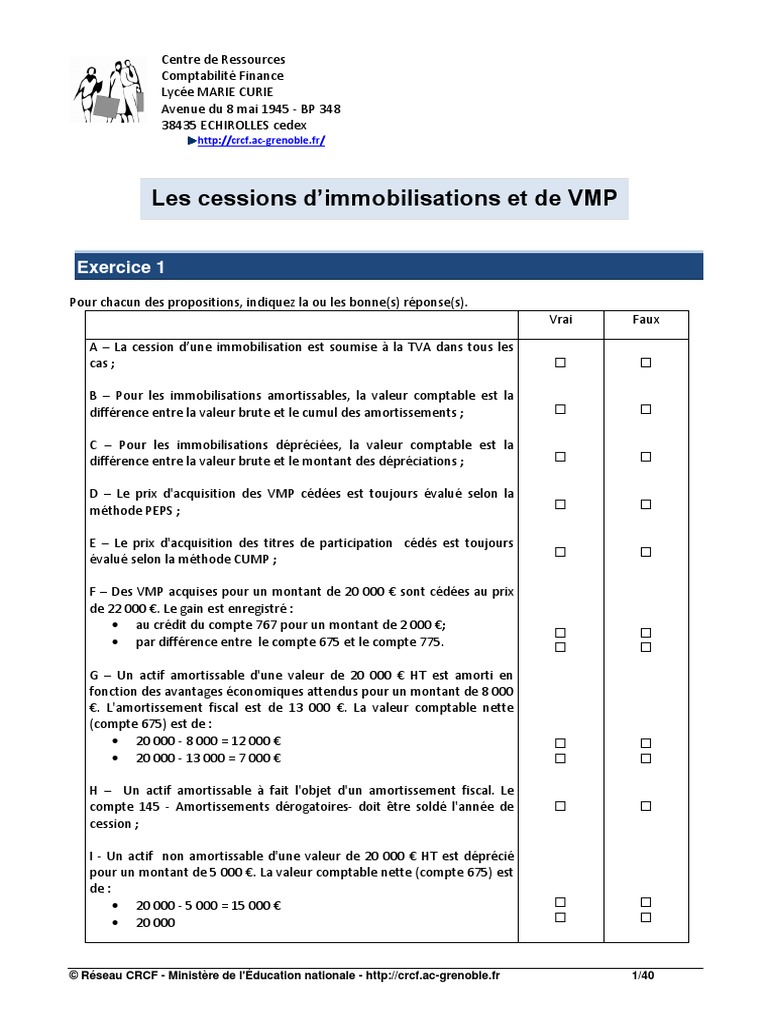 Les euros de plus-value sont enregistrés au crédit du compte 767. Cet article enregistre le produit net résultant des cessions de val. Les charges exceptionnelles sur opérations de gestion ( compte 671) A. Compte – Produits financiers. Les produits exceptionnels sur opérations de gestion ( compte 771) A. Il est crédité du prix de cession de ces valeurs mobilières de placement.