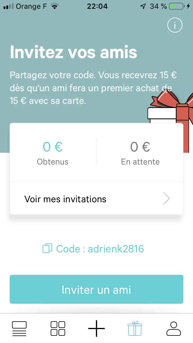 Je pourrais vous donner mon code de parrainage N2 mais vous n’en tirerez aucun avantage. Bénéficiez de euros crédités sur votre compte Ndès votre premier achat avec la carte bancaire que vous recevrez.