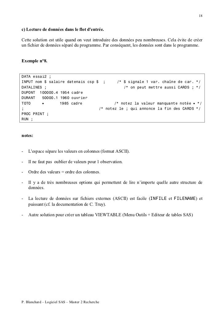 De manière réciproque, une table SAS peut être exportée dans un format donnée, texte (ascii) ou. Cela peut être des données manquantes ou des données aberrantes. Savoir traiter ces données permettra de produire un modèle prédictif accru et efficace.